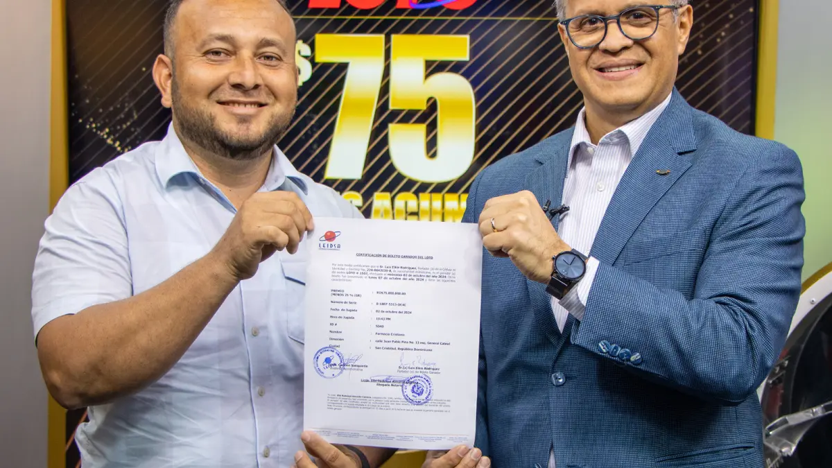 Santo Domingo.– SANTO DOMINGO.- La Lotería Electrónica Internacional Dominicana, S.A (Leidsa), informó que Luis Rodríguez recibió el certificado que lo acredita como el ganador de los 75 millones de pesos que tenía el sorteo Loto del pasado miércoles 2 de octubre.