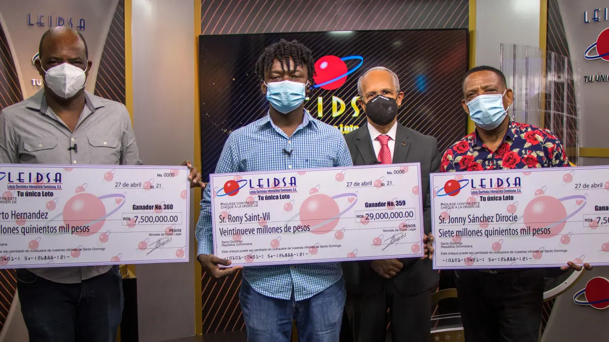 SANTO DOMINGO.- La Lotería Electrónica Internacional Dominicana, S.A, LEIDSA. “Tu única Loto”, entregó los cheques a tres nuevos millonarios. Dos de los cuales se repartirán RD$15 millones y un tercer ganador de RD$ 29 millones de pesos.