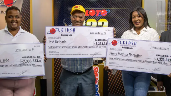 Según Leidsa, los tres acertaron con los números ganadores: 7-10-18-19-20-28 y cada uno de ellos recibió el monto de 7.3 millones de pesos.