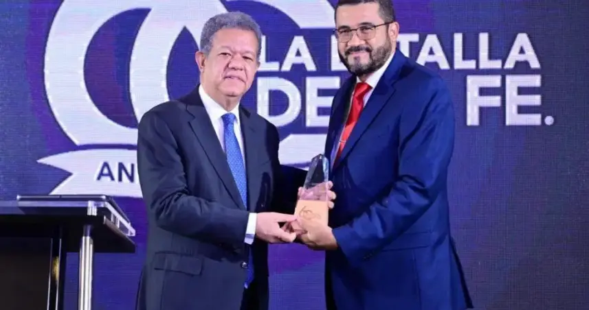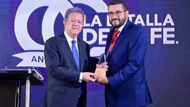 El pastor Ezequiel Molina hijo leyó una placa de reconocimiento que se entregó a Fernández, por La Batalla de la Fe, la que establece: “En conmemoración de nuestro 60 aniversario, agradecemos al gobierno del presidente Leonel Fernández, por su apoyo determinante a nuestra labor evangelizadora. Gracias por ayudarnos a llevar esperanza a través del evangelio”.