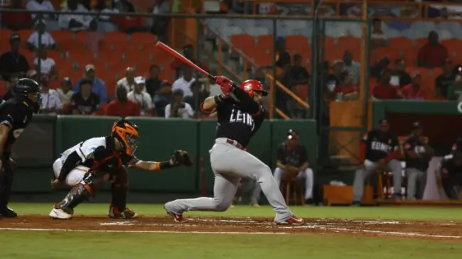 Los escarlatas marcaron dos vueltas en el mismo primer episodio frente a Félix Peña, quien llenó las bases con transferencias a Junior Lake, Jean Segura y Sandber Pimentel, luego un error en tiro del campocorto Rafael Lantigua en un batazo de Erik González por segunda permitió que Lake y Segura anotaran.