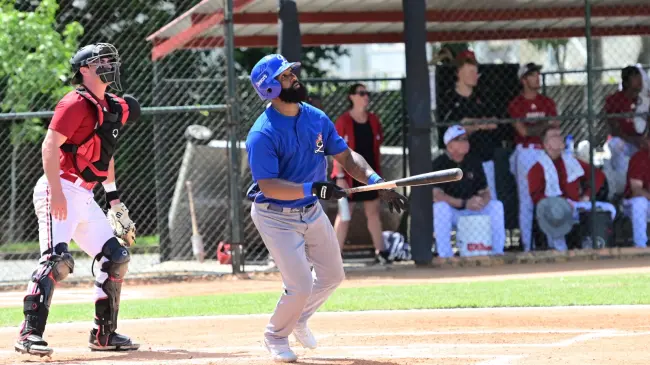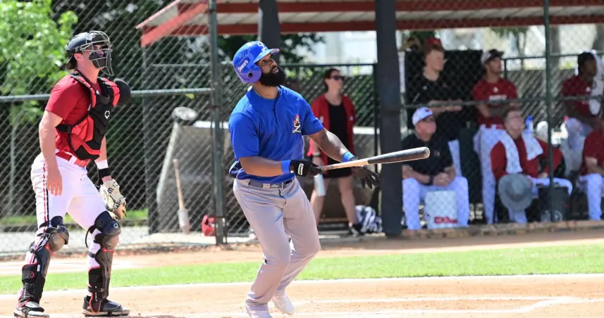 Santana jonroneó y remolcó cuatro carreras, Mel Rojas Jr. bateó tres imparables y produjo tres, mientras que Nate Eton conectó triple y remolcó tres más para comandar el despiadado ataque de los bates azules contra los universitarios.