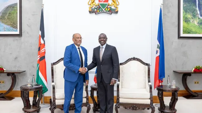 Nairobi -.– Nairobi. - El primer ministro de Haití, Ariel Henry, se reunió este jueves con el presidente de Kenia, William Ruto, en Nairobi, adonde se desplazó para discutir los detalles del despliegue de la misión multinacional autorizada por las Naciones Unidas y que el país africano se ofreció a liderar.