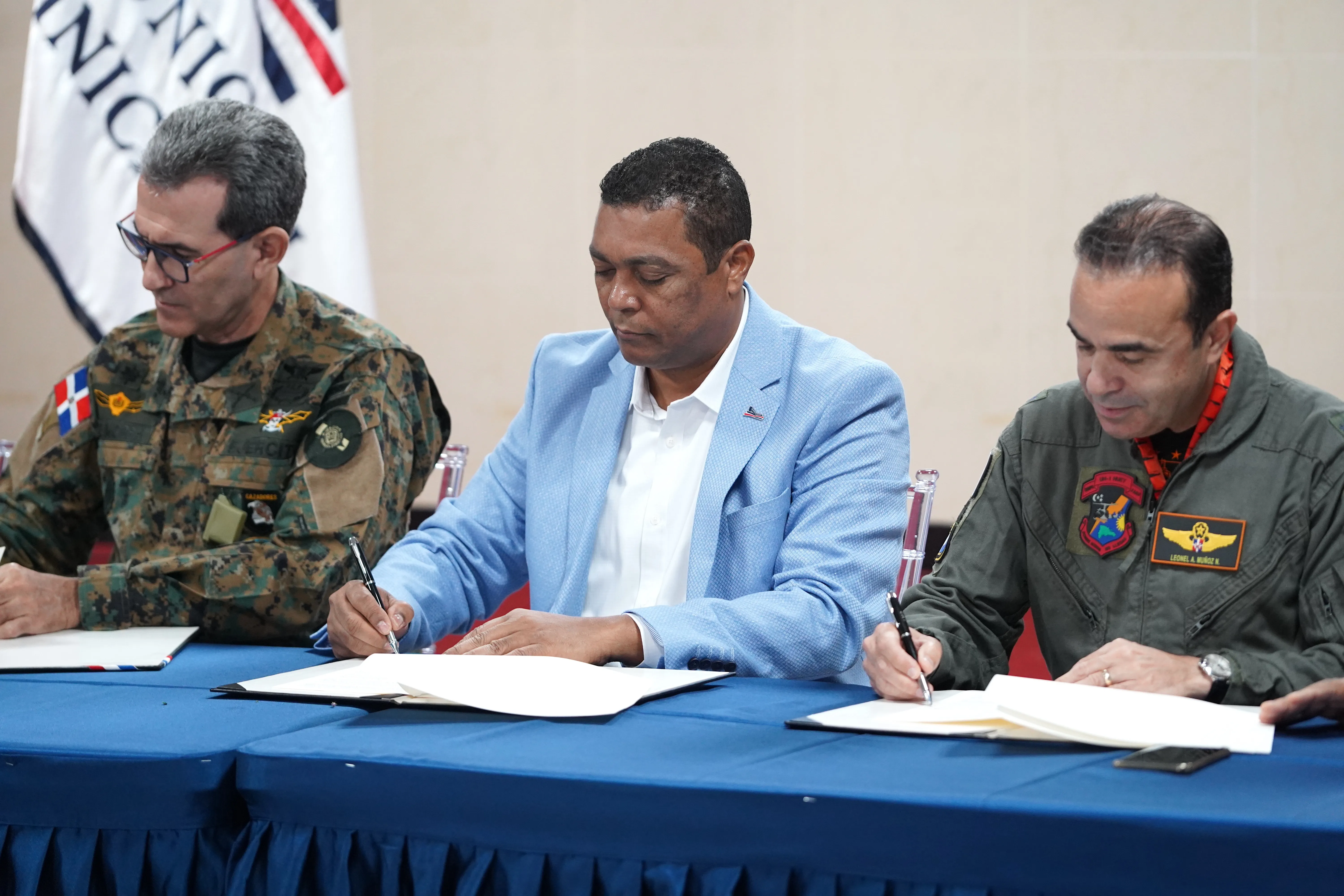 Esta transferencia de la aeronave se realizó en el marco de un convenio tripartito firmado entre la Liga Municipal, representada por su presidente, Víctor D´Aza; el Ministerio de Defensa de República Dominicana, personificado en el teniente general Carlos Luciano Díaz Morfa; E.R.D y la Fuerza Aérea de la República Dominicana, bajo la comandancia del mayor general piloto, Leonel Amílcar Muñoz Noboa.
