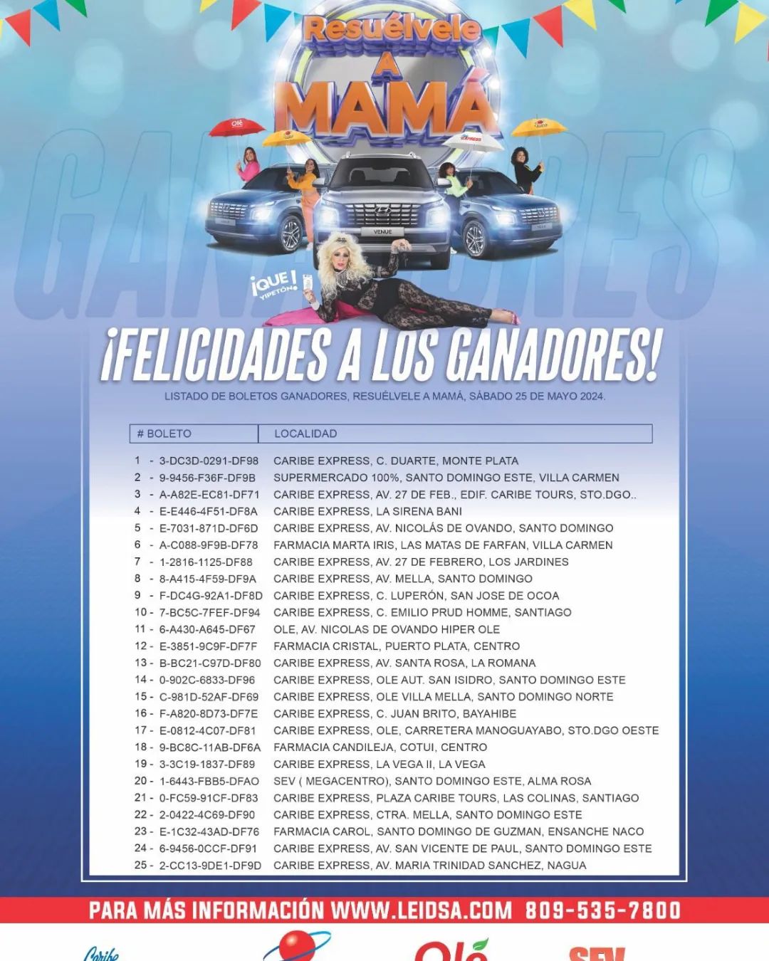 Lista de ganadores del sorteo “Resuélvele a mamá 2024” de Leidsa