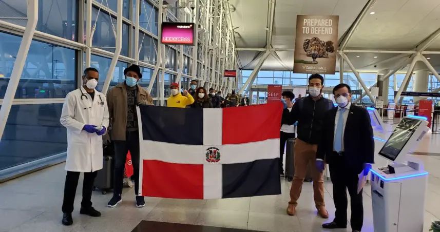 Según nuestro corresponsal Pavel Arias, el grupo de dominicanos llegó al país en el vuelo #8871 de la aerolínea Delta Airlines procedente del John F. Kennedy International Airport (JFK) de New York.El acto de regreso de los 118 dominicanos estuvo encabezado por el vicecónsul y director de Gabinete de la sede consular, Eduardo Hernández Incháustegui, con la asistencia del vicecónsul y director de Servicio al Cliente, Elbis Marte, así como del equipo de apoyo remoto del recién creado "ChatBot" del Consulado Dominicano.El chequeo de síntomas y temperatura de los pasajeros estuvo a cargo del reconocido doctor Juan Tapia Mendoza, fundador de la Ventanilla de Salud del Consulado Dominicano en Nueva York.Previo al abordaje, todos los pasajeros llenaron un formulario con información personal e historial médico.Nadie con fiebre podía abordar, pero ningún pasajero lo presentó al serle tomada la temperatura.A su llegada al AILA, estos también cumplirán con una cuarentena mandataria de 14 días en un lugar designado por el Ministerio de Salud Pública.El primer levantamiento de datos de pasajeros varados en Nueva York, Nueva Jersey, Connecticut y Pennsylvania, para un vuelo ferry, a raíz de la medida del cierre de las fronteras aéreas de la República Dominicana fue realizado por el Consulado el 20 de marzo, y la convocatoria cerró el dia 21 del mismo mes. El registro de las personas interesadas se hizo a través del nuevo sistema de mensajería de WhatsApp del Consulado Dominicano, el “ChatBot” en el +1-914-826-8091, donde éstas escribían ‘varado’ para ser registradas.El primer vuelo estaba programado para el viernes 27 de marzo, pero el permiso fue revocado por las autoridades del Ministerio de Salud Pública por razones obvias.El congresista dominico-estadounidense Adriano Espaillat se interesó por el caso de los dominicanos varados y sostuvo una conversación con el presidente Danilo Medina, quien le aseguró que iba autorizar el vuelo ferry para que pudieran retornar al país.Mientras que el cónsul general en New York Carlos Castillo estuvo monitoreando junto a un equipo del personal consular la situación de sus connacionales ante la pandemia de Coronavirus, disponiendo prestarles asistencia, protección, información y orientación, acorde con las medidas que ha implementado las autoridades de Salud Pública del país. Se recuerda que esta el Ministerio de Relaciones Exteriores estableció el procedimiento a seguir para el regreso de ciudadanos varados, y que deseaban retornar en vuelos humanitarios.Esta fue la primera operación que se realizó de dominicanos varados en Nueva York, en su gran mayoría personas que tenían una necesidad marcada para retornar a su nación, y que vinieron desde California, Seattle, y Miami.