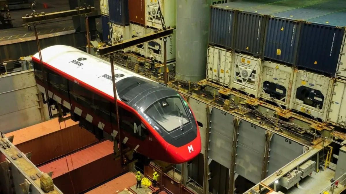 Llega el primer tren y 4 vagones del Monorriel de Santiago