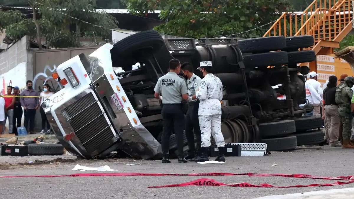 Se recuerda que el accidente ocurrió cuando el tráiler en el que viajaban hacinados los indocumentados sufrió un accidente por el conductor transitar a gran velocidad. El tráiler chocó contra una pared de un puente peatonal.