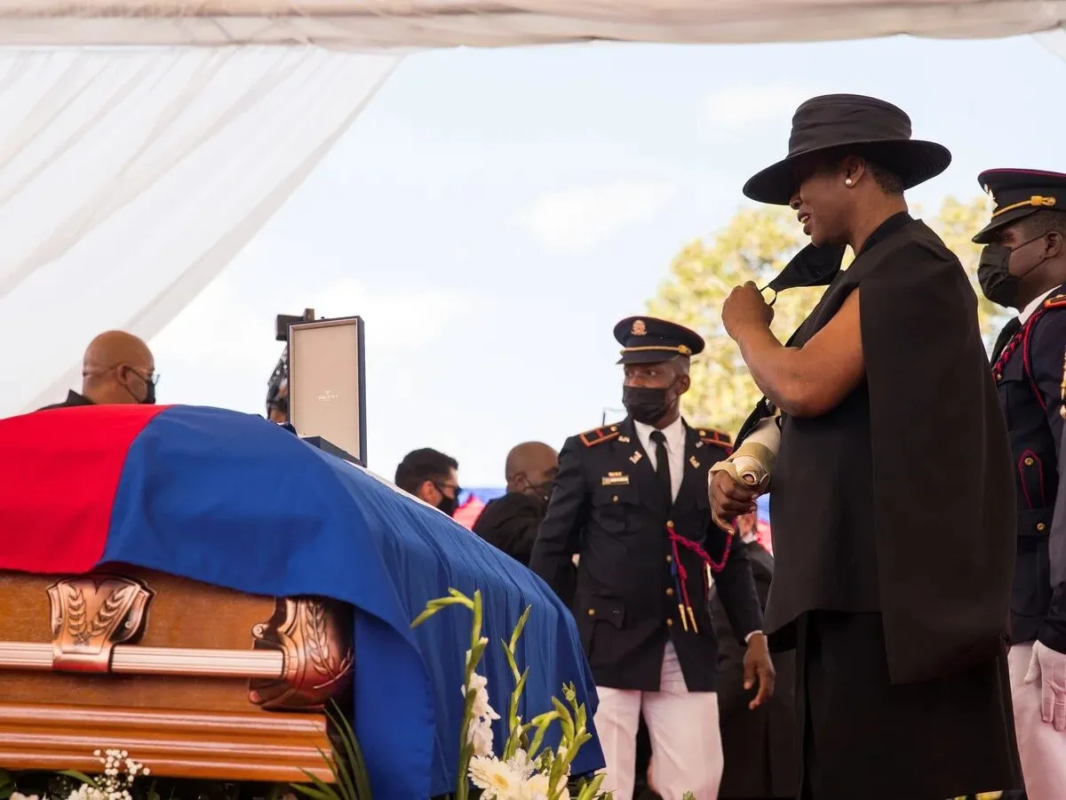 Objetivo de todas la miradas durante el funeral celebrado en Cap-Haitien, la viuda acusó del magnicidio a la oligarquía haitiana en un discurso que se podría considerar su primer paso hacia la carrera política a la que la encaminó el magnicidio de su esposo.