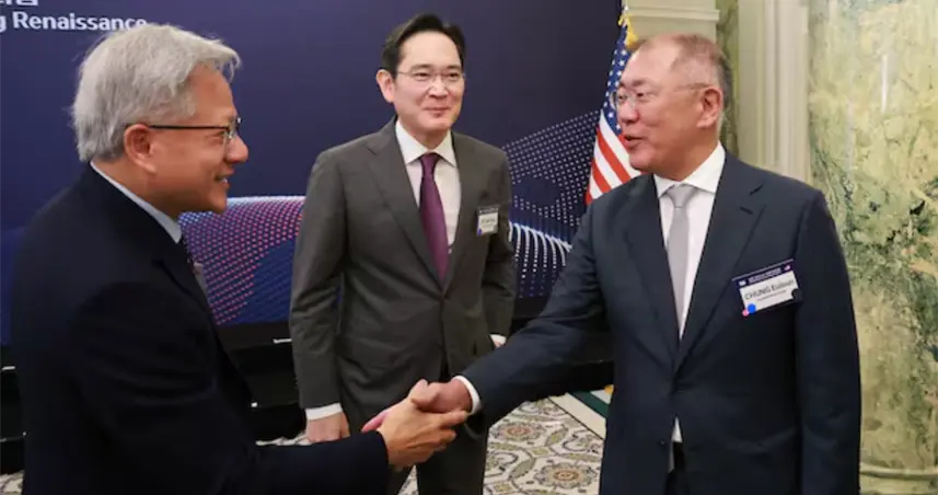 El presidente de Samsung, Lee Jae-yong, el de Hyundai, Chung Eui-sun, y el director ejecutivo de Nvidia, Jensen Huang, se reunieron la noche anterior para disfrutar de un “chimaek”, expresión surcoreana que combina pollo frito y cerveza.