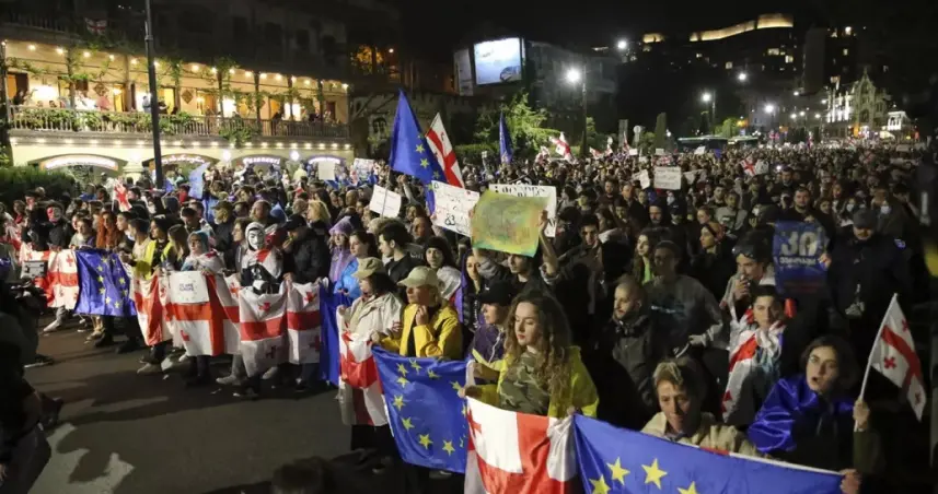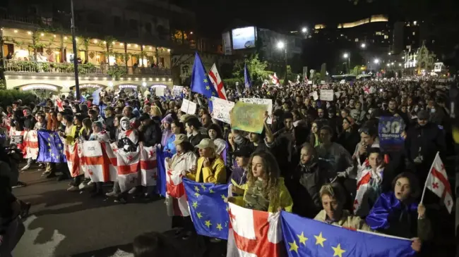 Los manifestantes bloquearon la avenida frente a la sede parlamentaria entre gritos de. "¡El lugar de Georgia está en Europa!" y reclamos de dimisión del Gobierno y celebración de nuevas elecciones parlamentarias.