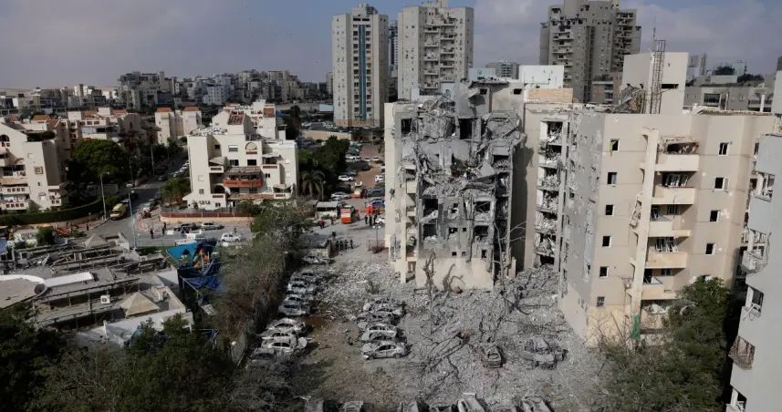 “El misil entró por allí y ahí se ve el cráter”, señala en el interior de un edificio que hasta hace unos días era una casa y ahora es un montón de ruinas con trabajadores retirando escombros.