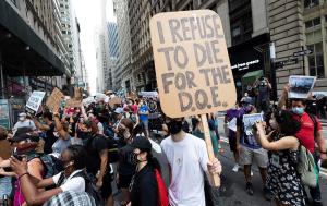 En la marcha, que se inició a las puertas del Departamento de Educación de Nueva York, se oyeron gritos como «Hey De Blasio what do you say? How many kids have you killed today?» (Eh, De Blasio, ¿qué dices? ¿A cuántos niños has matado hoy?» y se vieron bolsas negras alargadas portadas por los manifestantes, bajo el mensaje «los profesores no quieren salir del colegio en bolsas de cadáveres».
