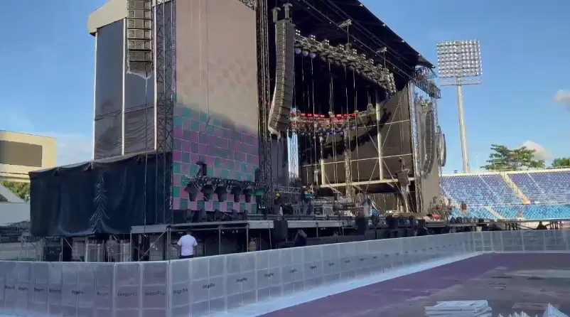 ¡Luces y tarima! Continúan preparativos para el concierto del grupo Aventura