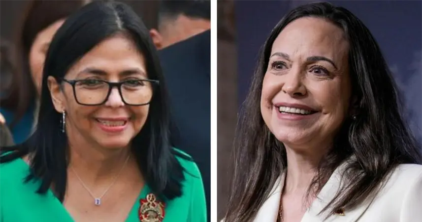 La presidenta encargada de Venezuela, Delcy Rodríguez y la líder opositora venezolana María Corina Machado