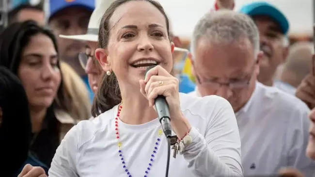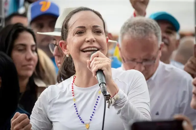 La opositora Machado, en una movilización por Caracas ante miles de sus simpatizantes, aseguró el martes que, según el 84% de las actas de votación que tiene en su poder la oposición, es Edmundo González quien ganó las elecciones con una ventaja del 70% y no Nicolás Maduro.