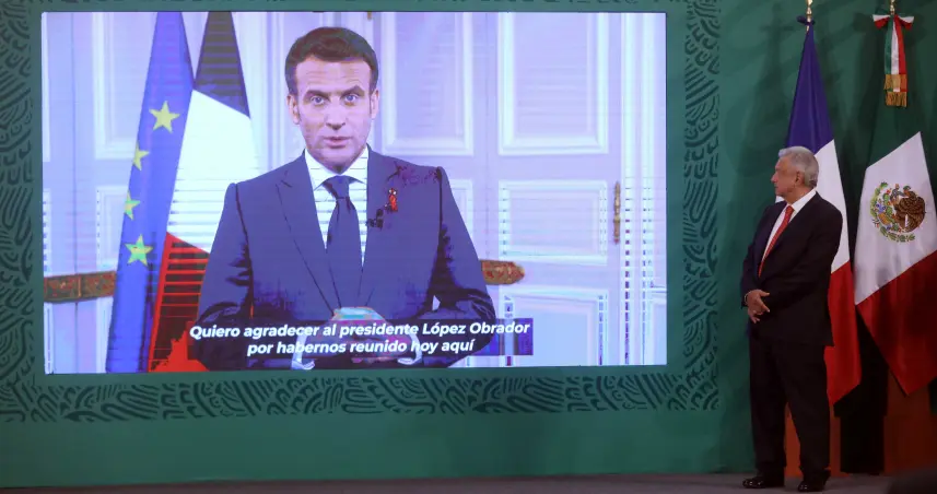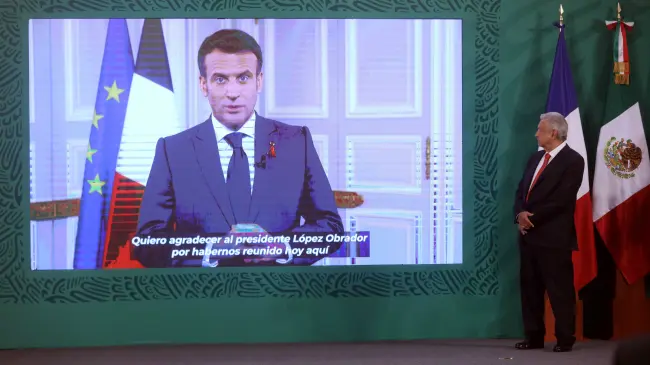 El presidente de Francia, país que albergará la segunda parte del evento en junio, emitió un mensaje que se transmitió desde el Palacio Nacional de México, sede del foro del 29 al 31 de marzo.