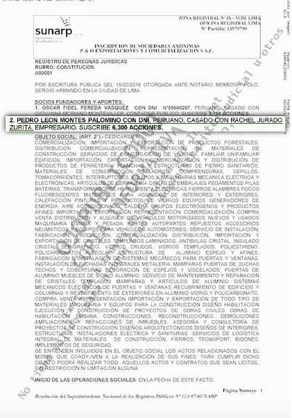 La expansión de Inversiones La Oroza no termina allí. Justo en el mismo mes en que la autoridad de comercio del gobierno de Estados Unidos le exigió explicaciones al gobierno de Perú por las exportaciones de madera de origen ilegal de Inversiones La Oroza de 2015, el esposo de una tía de Ascencio Jurado creó una nueva empresa para comercializar madera. P&O Exportaciones y Comercialización S.A.C. fue fundada en Perú el 15 de febrero de 2016 por Pedro León Montes, como socio mayoritario y dueño de 6300 acciones. Montes es casado con Rachel Jurado Zurita, según consta en el registro público. Ella es, a su vez, hermana de la mamá de Luis Ascencio Jurado, Mila Jurado Zurita, según estableció esta colaboración.