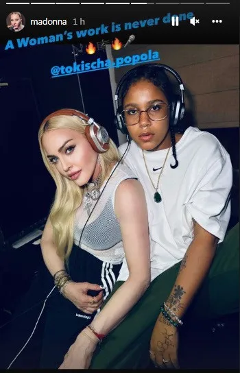 Tokischa Altagracia Peralta, nombre real de la urbana, se encuentra de gira por Estados Unidos y esta tarde en la redes de la diva del pop Madona posteó varios historie en su cuenta de intagram .