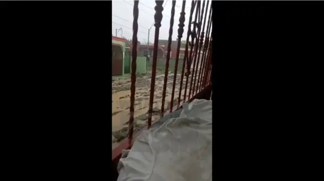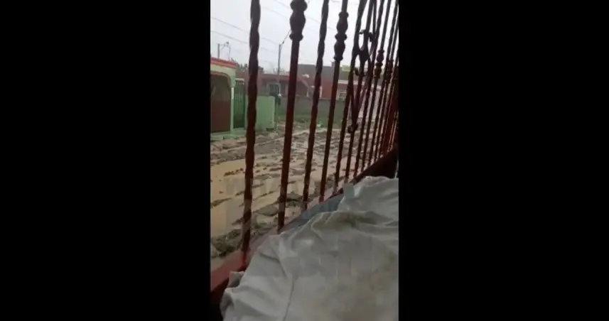 Las imágenes suministradas corresponden al día de hoy tras las lluvias provocadas por la depresión tropical Grace y se puede ver como la calle frente a la casa de la señora se convierte en un lodazal con surcos de agua.