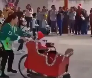 La docente Ale Hernández, de la ciudad de Coahuila convirtió una silla de ruedas en un trineo, para que su alumno pudiera participar y divertirse en el acto de Navidad junto a sus compañeros.