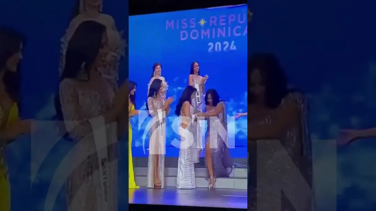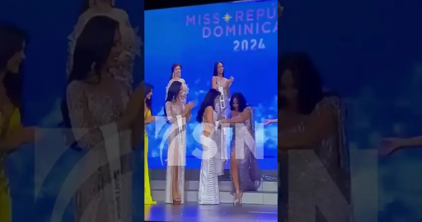 La directora nacional de la franquicia Miss Universo República Dominicana, Magali Febles, casi sufre una caída cuando se disponía a entregar un reconocimiento a uno de los promotores del certamen.