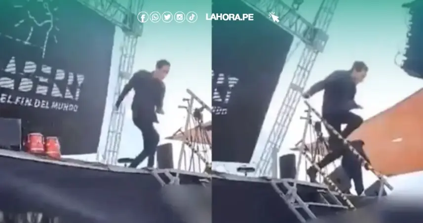 De acuerdo con imágenes difundidas por los asistentes del espectáculo, el hombre identificado Jean Paul Olhaberry se salvó por escasos metros de ser aplastado por la estructura y logró saltar hacia la zona del público.