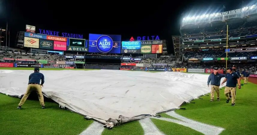 Los dos equipos y la oficina central de Grandes Ligas (MLB) tenían la esperanza de que la lluvia que cayó sobre el Bronx desde antes de las siete de la noche, cediera a tiempo para permitir la celebración del cotejo, pero eso no había ocurrido a las 9:30 pm, cuando tomaron la decisión de posponerlo.