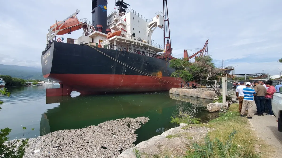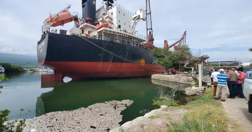 El área del puerto del Cayo en Barahona se ha visto afectada por grandes arribazones de sargazo, acumulándose y descomponiéndose en la zona aledaña al muelle y a la dársena No. 5 que está ubicada en una zona costera cerrada con limitado movimiento de mar.