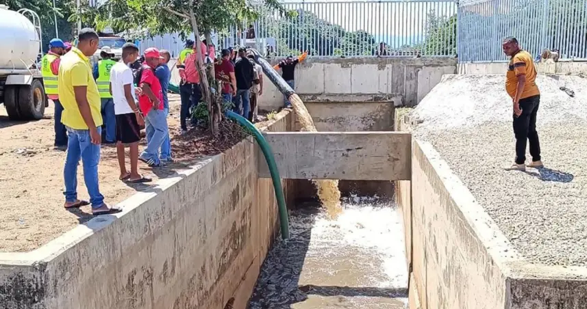 Debido al bajo caudal que lleva el río, brigadas del INDHRI dominicanas instalaron sacos de arena para crear dos diques a fin de retener el agua y de ahí bombearla desde la zona de la Aduana Vieja hacia el canal de La Vigía.