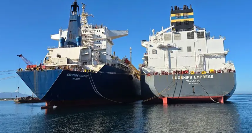 La operación se llevó a cabo bajo un esquema de transferencia buque a buque (ship-to-ship, STS), mediante el cual el LNG fue transferido a la unidad flotante de almacenamiento y regasificación (FSRU) Energos Freeze, atracada desde el 1 de septiembre de 2025 en la terminal marítima costa afuera Manzanillo Energy, propiedad de Energía 2000.
