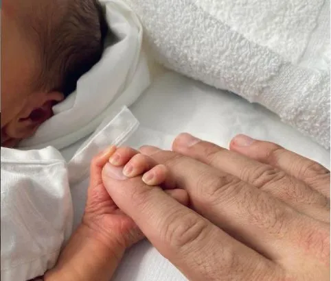 “El Señor es maravilloso”, compartió Cruz en la fotografía de la pequeña, nacida el 13 de abril, agarrando un dedo del interprete.