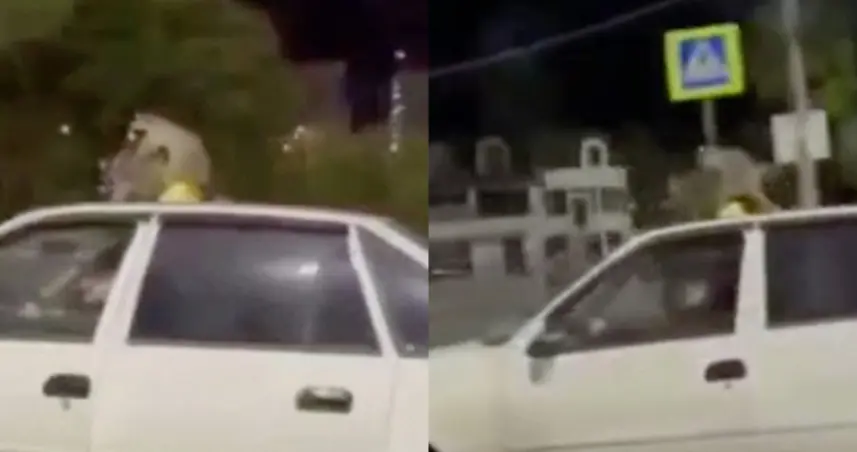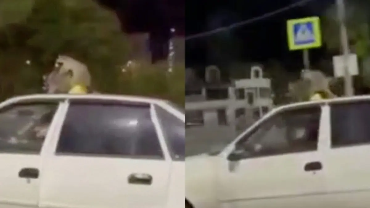 Mapaches celebran el amor en el techo de un taxi en movimiento