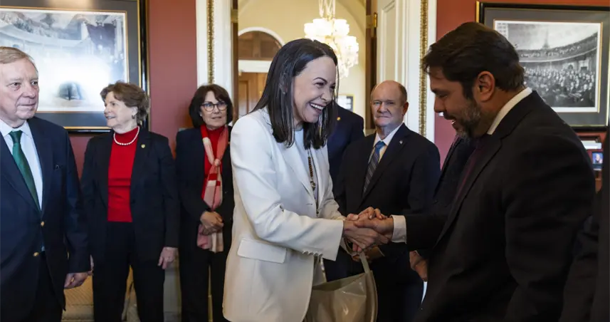 Entre los senadores con los que se reunió -durante aproximadamente una hora- la premio Nobel de la Paz 2025 destacan los demócratas de alto rango Dick Durbin o Rubén Gallego y republicanos como Rick Scott.