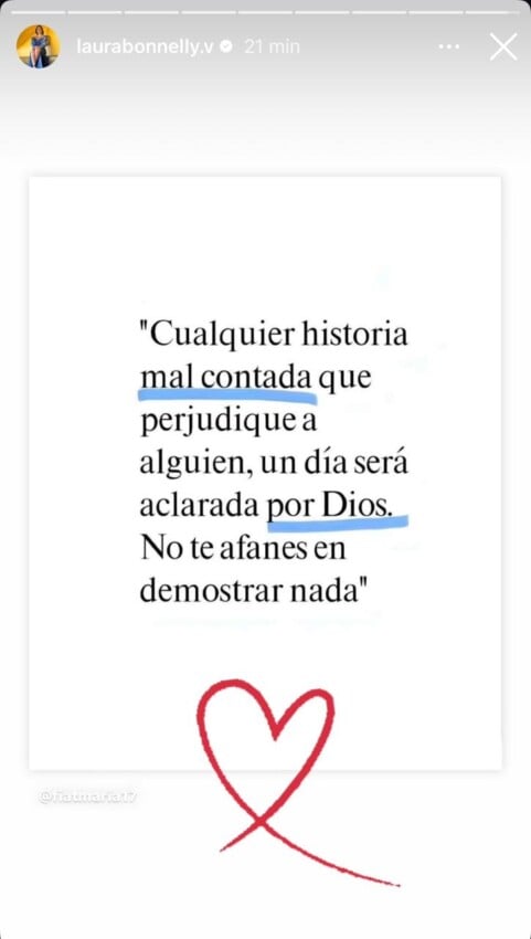 “Cualquier historia mal contada que perjudique a alguien, un día será aclarada por Dios. No te afanes en demostrar nada”.