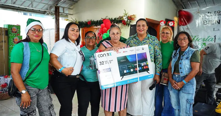 Durante la jornada, los asistentes participaron en rifas de electrodomésticos y recibieron sacos de alimentos, una iniciativa organizada por el Equipo Cinco Estrellas en colaboración con la Junta de Vecinos Unidad y Progreso del Quemado.