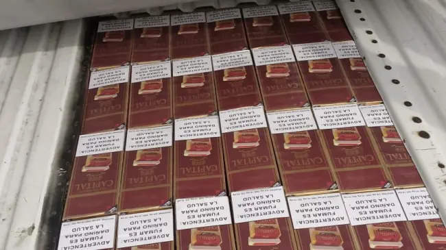 Más de 70 mil cigarrillos ilícitos fueron ocupados bajo el falso piso de un camión en Montecristi.