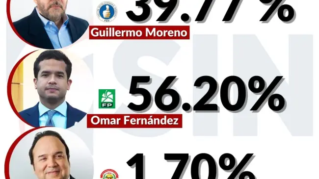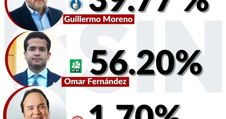 Los resultados electorales con el 99.78% de los colegios computados dan ganador a Omar Fernández, de la Fuerza del Pueblo y la Alianza Rescate RD con el 56.20%.