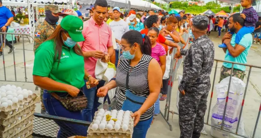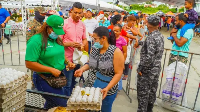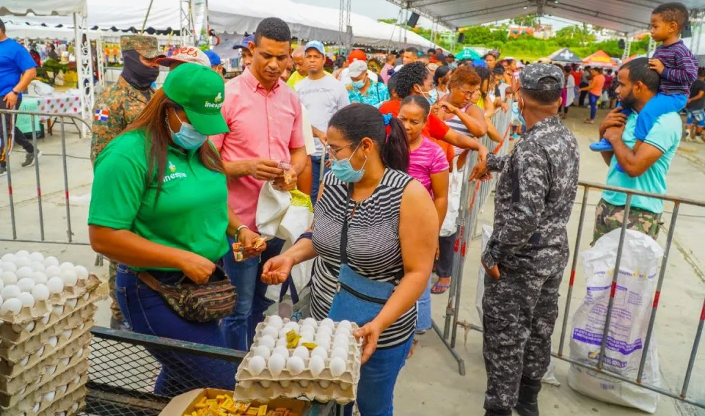 Los asistentes tuvieron acceso a cartón de huevos a 90 pesos, pollos a 150, gallinas a 100 pesos, plátanos y guineos a peso; papas a 10 pesos la libra, arroz selecto a 20 la libra, ajo a 100 la malla, cebolla a 25 la libra, habichuelas rojas de 800 gramos a 110 y la gallina gigante a 300 pesos, medio galón de aceite a 280 y sacos de 25 libras de arroz a 500 y otros productos de la canasta básica a un precio muy inferior.