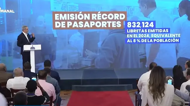 La información fue a dada a conocer por el presidente Luis Abinader durante la Semanal con la Prensa, quien señaló que la cantidad de pasaportes emitidos en el año reflejan un crecimiento del 80.7 por ciento en comparación con 2019.