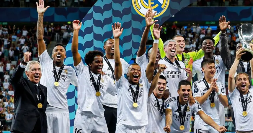 Una acción de Vinícius desequilibró la final de la Supercopa de Europa, sirviendo en bandeja el tanto a Fede Valverde a los 59 minutos, y Mbappé marcó en su primer disparo a puerta, colocando en la escuadra un golpeo de derecha, para sentenciar el partido a los 68 minutos. El equipo de Carlo Ancelotti logró el primero de los siete títulos a los que opta en la nueva temporada.