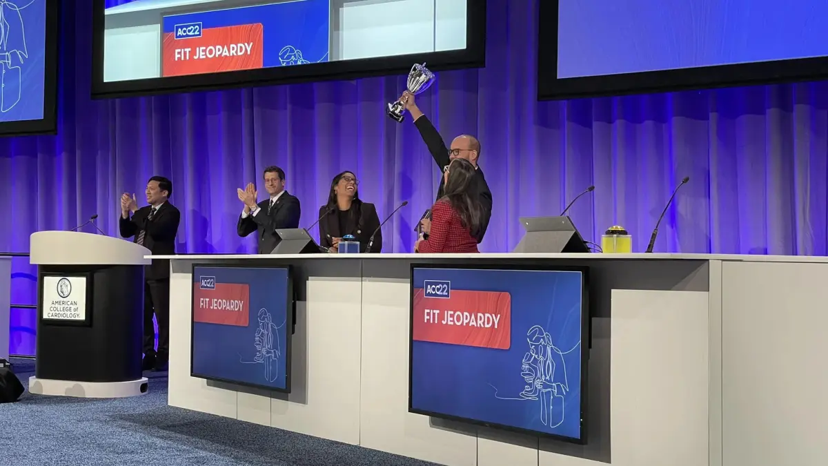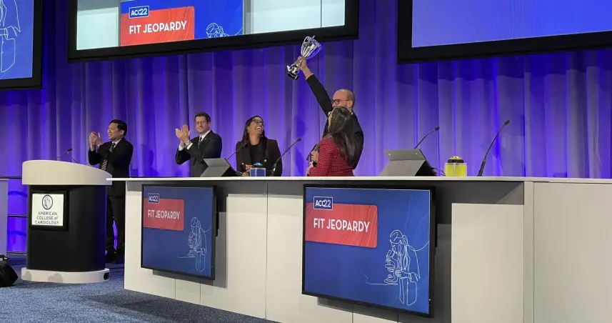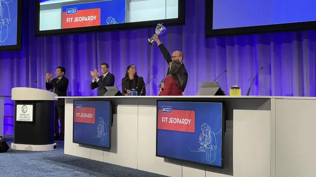International FIT Jeopardy es una competencia amistosa que permite a los equipos probar sus conocimientos clínicos y brinda valor educativo tanto a los concursantes como a la audiencia en una variedad de temas que van desde imágenes, intervención y prevención sobre temas de la salud del corazón, explica la institución académica en su sitio web.