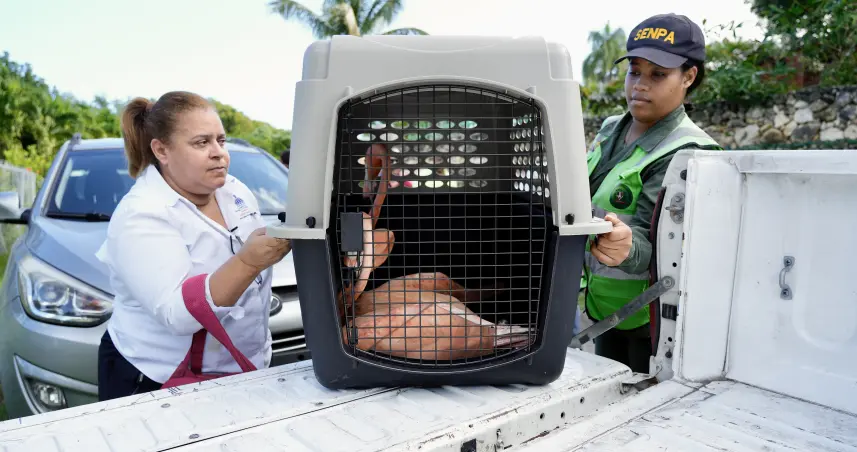 Los técnicos Luis Aníbal José Amparo e Indira Sanchez, inspectores del Departamento de Regulación y Control de Vida Silvestre de la Dirección de Biodiversidad, rescataron las aves en Flamingo Jungle, un espacio de alojamientos que se oferta a través de la plataforma Airbnb.