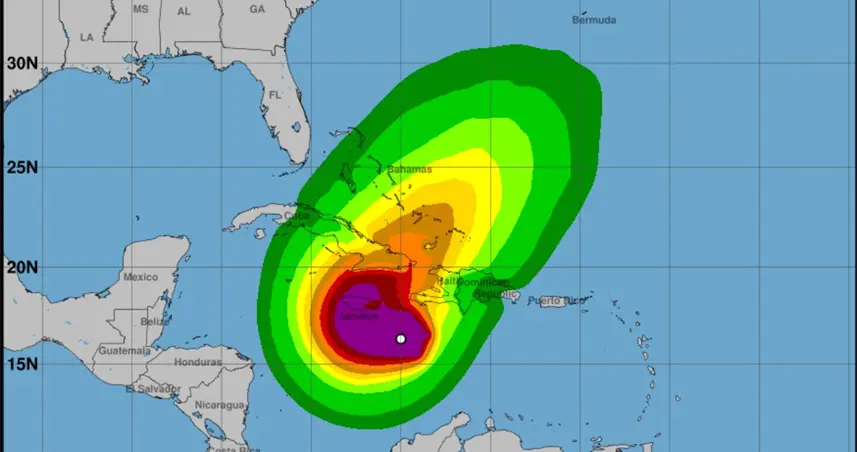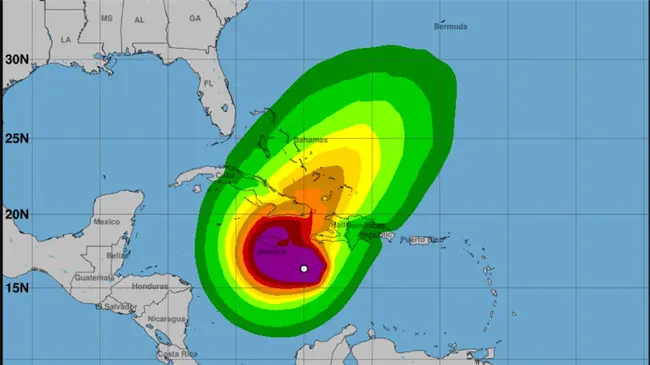 El CNH mantiene un aviso de huracán para Jamaica y una vigilancia de huracán y aviso de tormenta tropical para el suroeste de Haití, donde también se esperan lluvias torrenciales y deslizamientos de tierra catastróficos durante el fin de semana.
