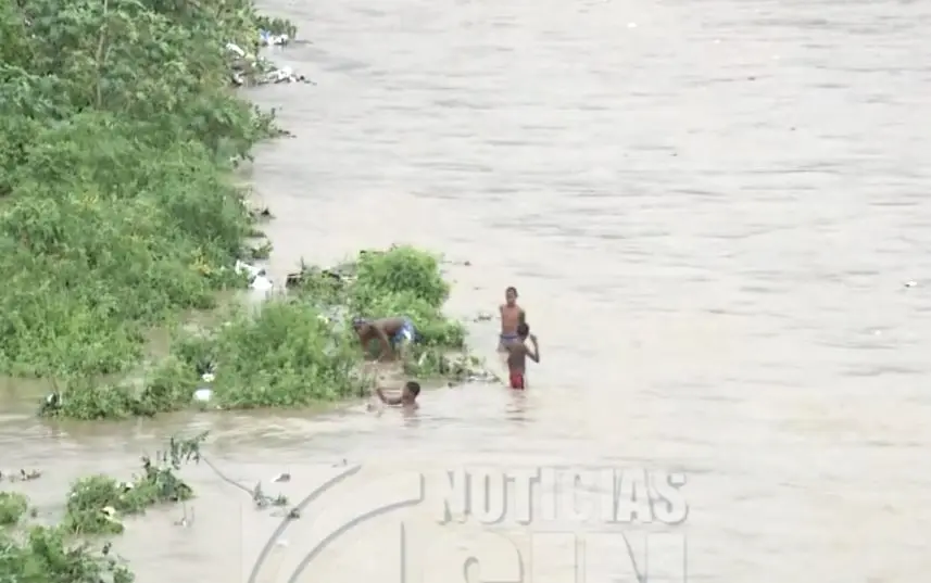 Menores se lanzan a río Nigua en San Cristóbal pese a la crecida