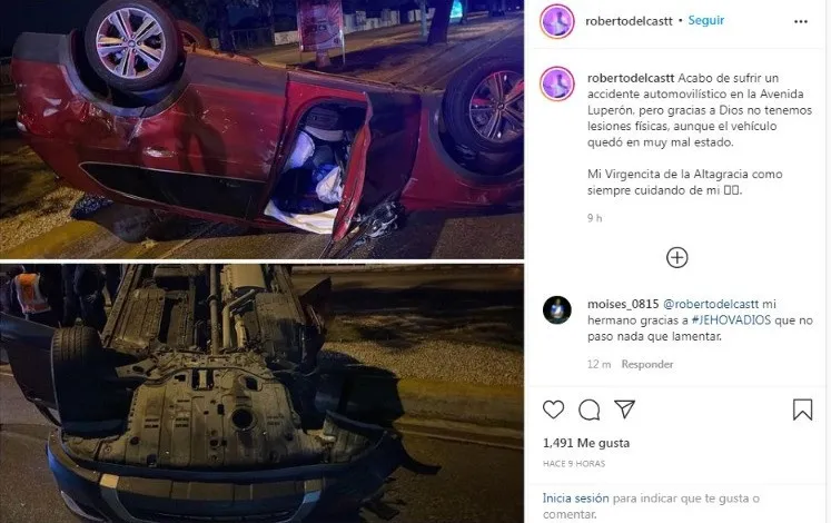 Santo Domingo.- El merenguero Roberto del Castillo sufrió un grave accidente de tránsito del que salió ileso la madrugada de este lunes en Santo Domingo.
