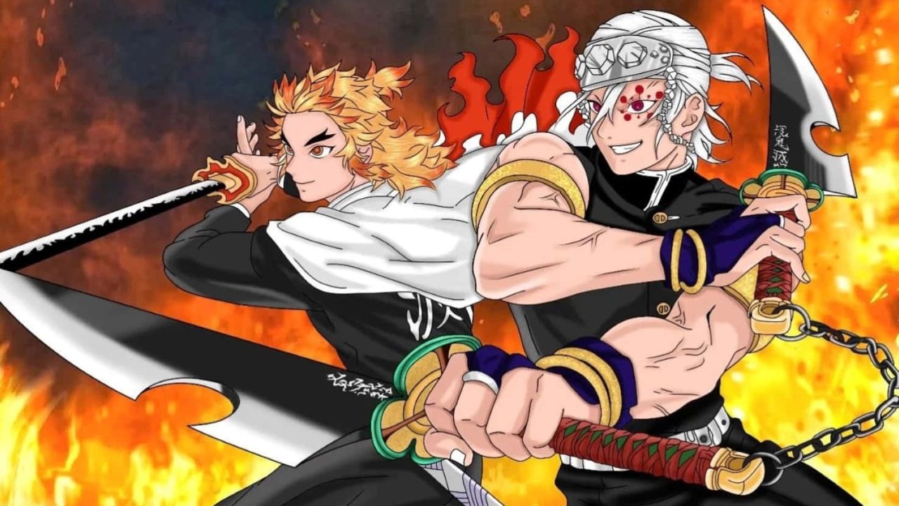 Tengen y Kyojuro son compañeros Hashira, parte del Cuerpo de Cazadores de Demonios. Los dos son los Hashiras del Sonido y de la Llama, respectivamente.
