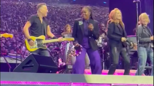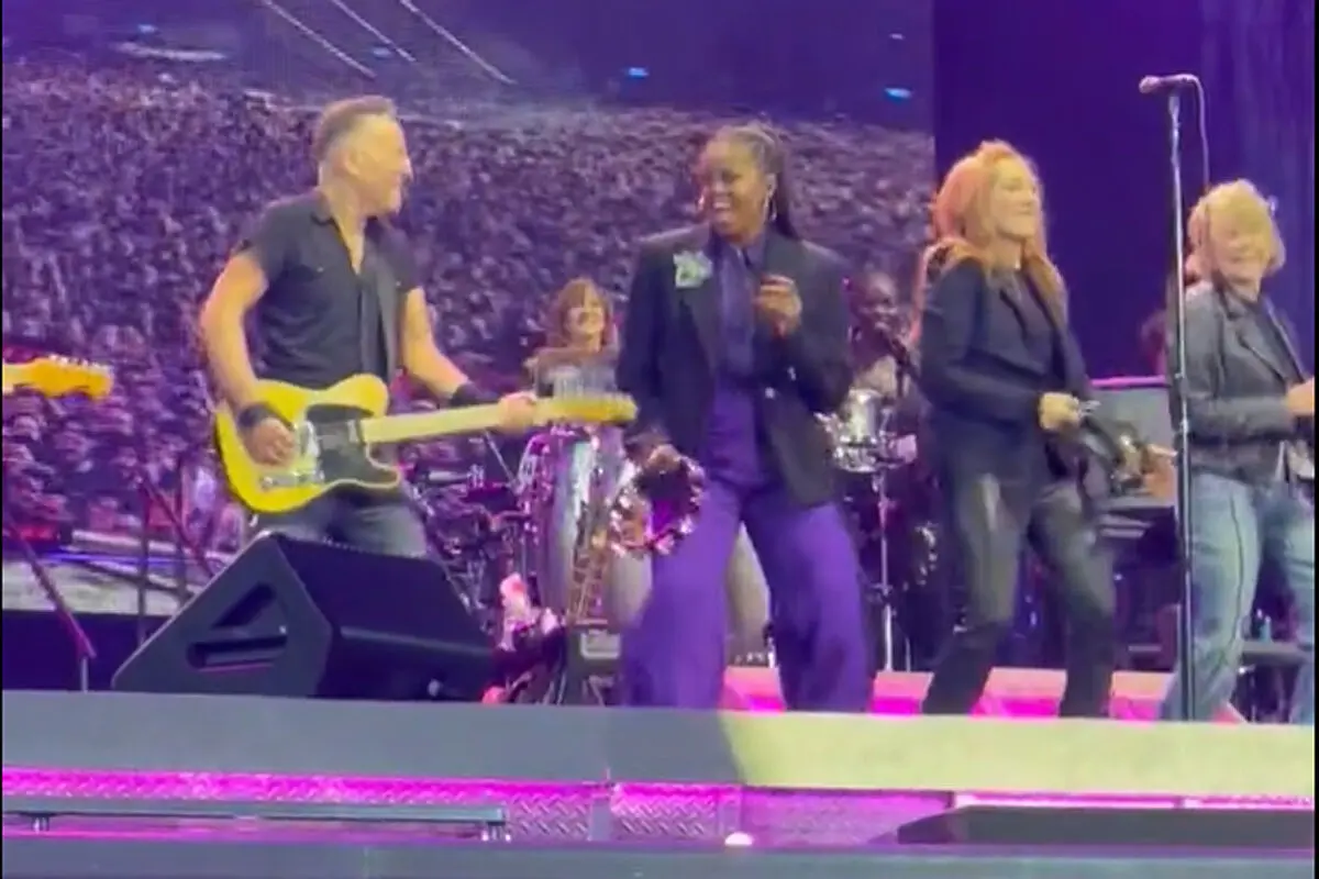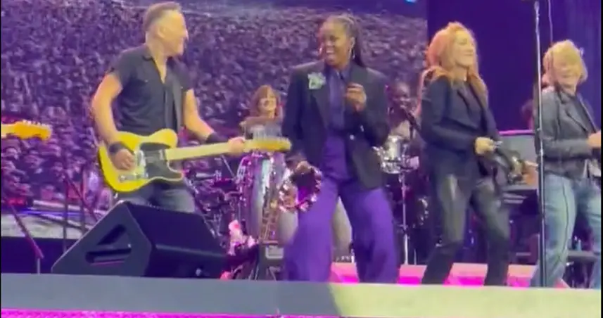 Michelle Obama toca la pandereta en el concierto de Bruce Springsteen