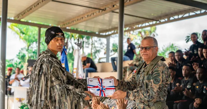 Durante el acto fueron entregadas distinciones a los participantes más sobresalientes y se impusieron las insignias correspondientes a cada curso, símbolo del cumplimiento exitoso de una formación rigurosa que eleva los estándares de preparación, profesionalismo y alistamiento de las Fuerzas Armadas de la República Dominicana