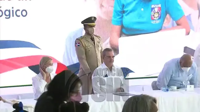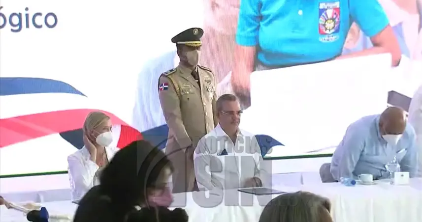 Luego de varios segundos la seguridad presidencial sacó al hombre del acto de entrega de tabletas a estudiantes de nivel primario, en Haina.